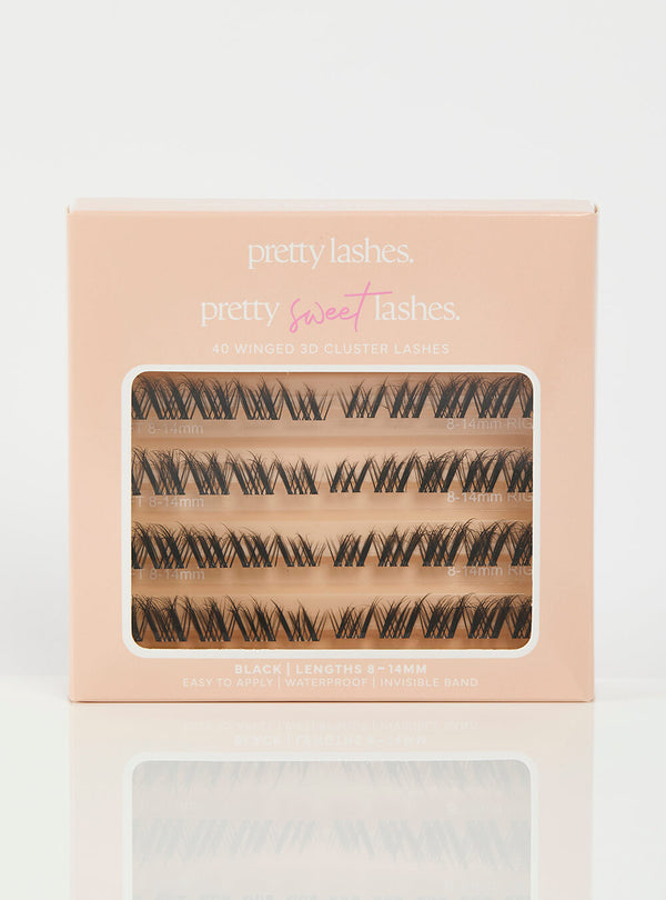 Sweet meets sultry with Pretty Sweet Cluster Lashes. Your go-to for soft volume and a lifted, winged finish. Designed with a flattering curl and a 3D layered effect, these clusters create that signature flared-out shape that enhances and elongates the eyes with just the right touch of drama.
